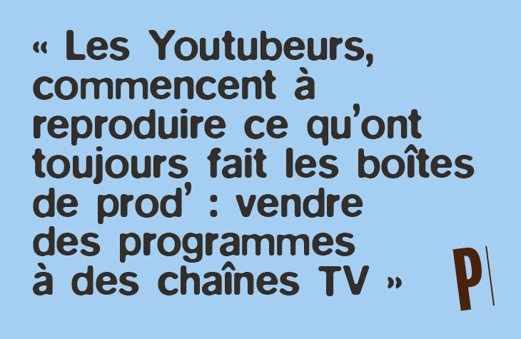 On reproduit exactement ce que font des boîtes de production depuis des dizaines d’années en vendant des programmes à des chaînes. Sauf qu’aujourd’hui, les boîtes de production, ce sont les YouTubeurs.